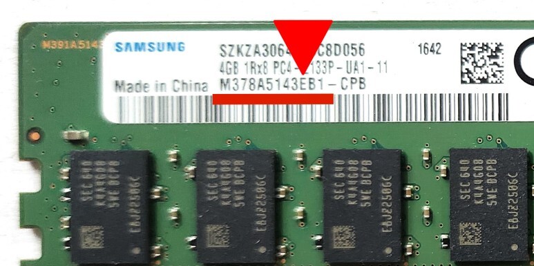 위와 같이 M378A5143EB1 이라고 써진 부분이 있는데요. 여기서 뒤에서 3번째 글자인 E 가 다이를 의미 합니다.