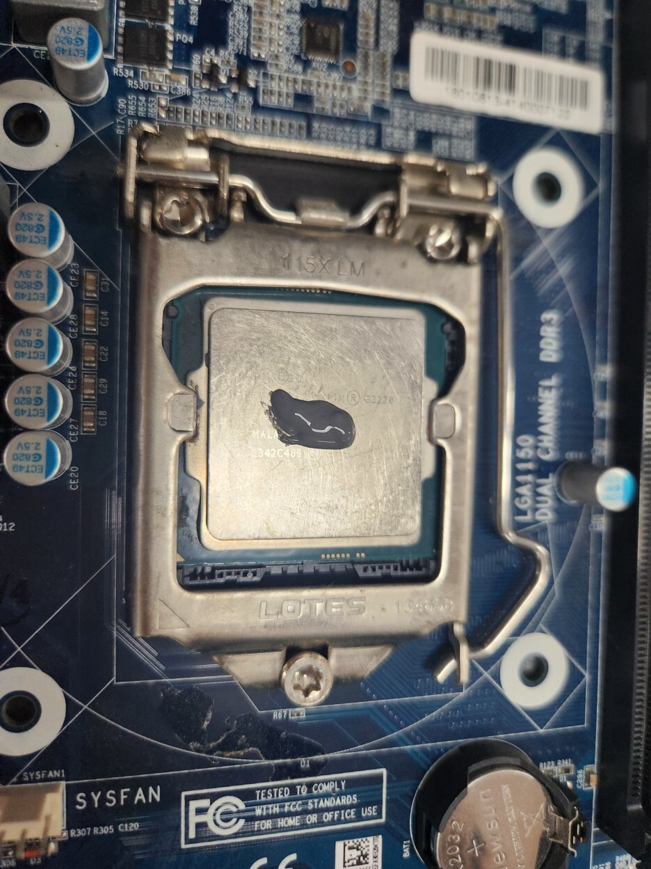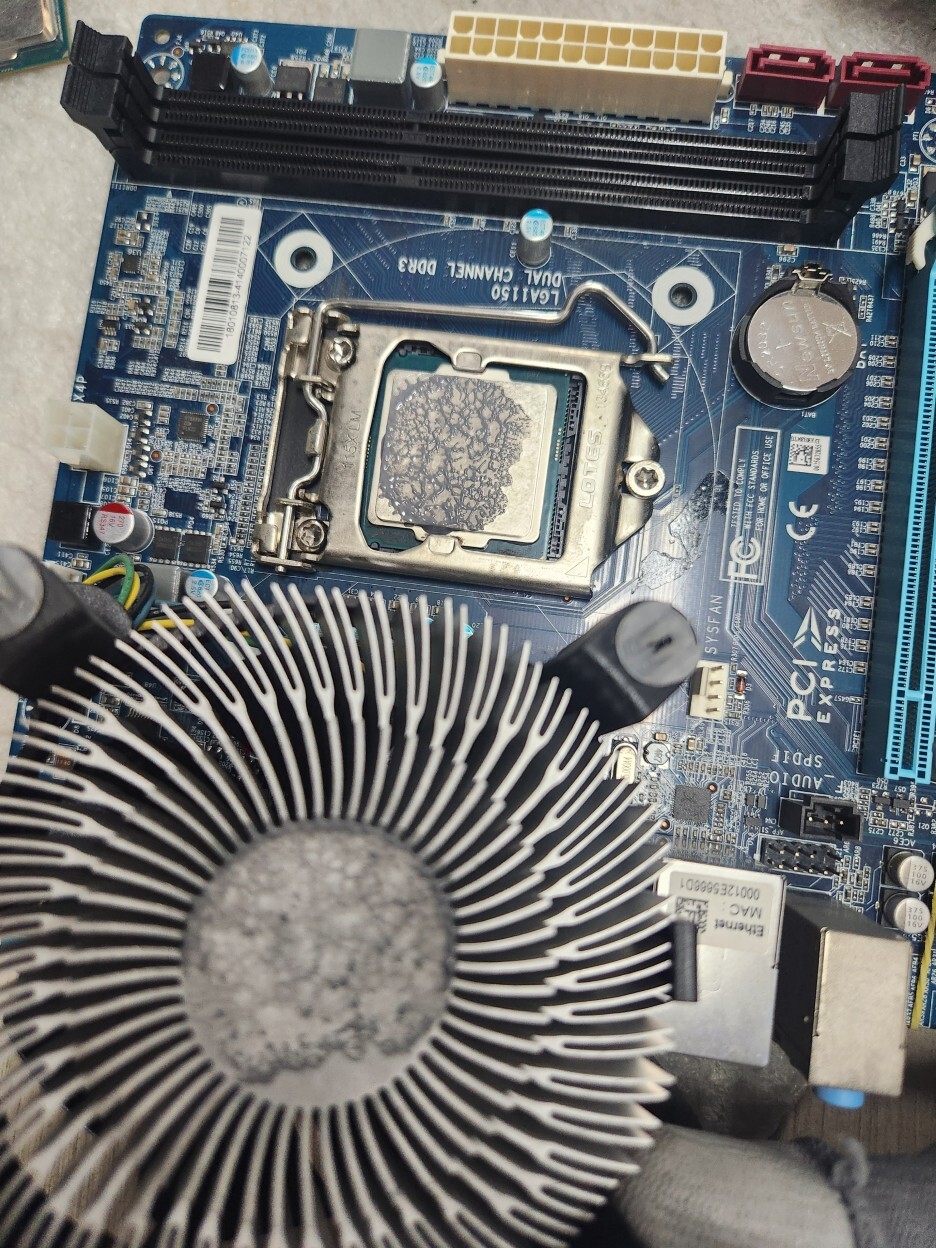 잘못 발라지거나, 쿨러가 잘못 장착되었었다면, 써멀구리스가 퍼져있지않고 뭉쳐있으며, 쿨러나 CPU의 표면이 잘 안보입니다.