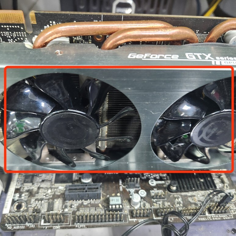 종종 발생하는 문제인데요. 쿨러에 본체내부의 케이블 등이 닿아서 심한 소음을 일으키는 경우가 있으며 쿨러 끼여서 쿨러가 안돌게되어 그래픽카드가 불량이 나는 경우도 있습니다.