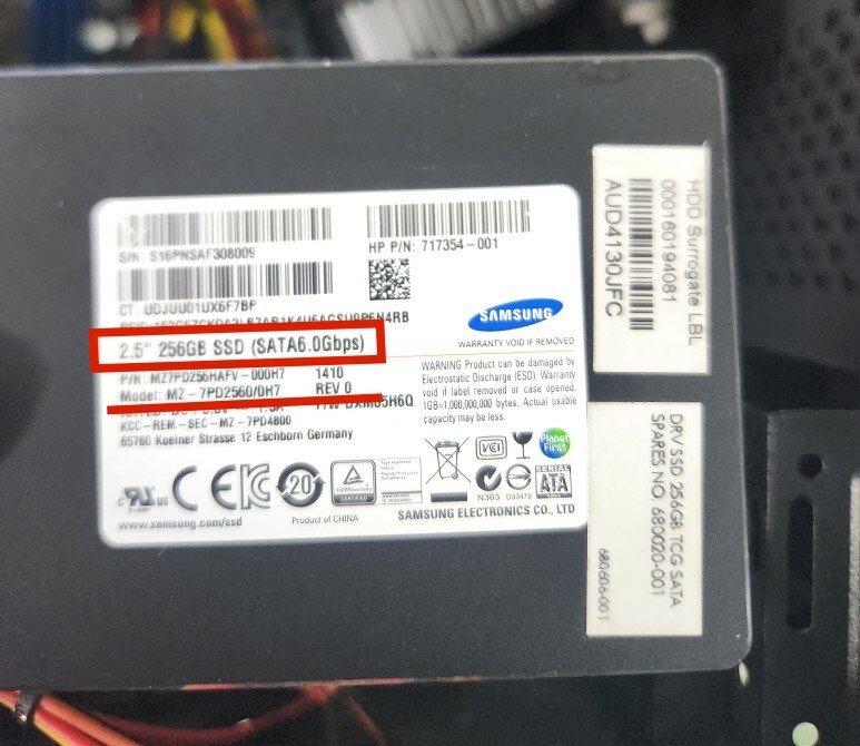 이 사진의 부품은 삼성, 256GB SSD네요.