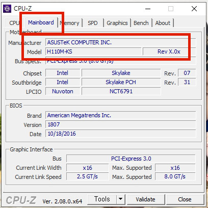 메인보드 이름도 확인이 가능합니다.