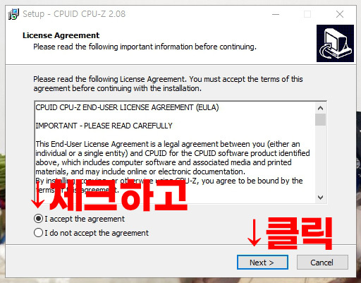 설치가 완료되면, CPU-Z 프로그램을 실행합니다.