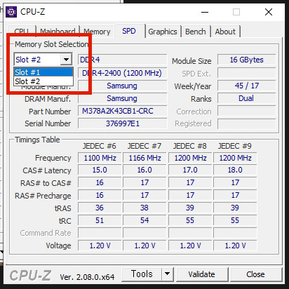 그리고 다시 위 그림을 볼까요? 슬롯 1번에는 DDR4 2400 삼성 16G메모리가 장착되있는걸 알수 있습니다.
