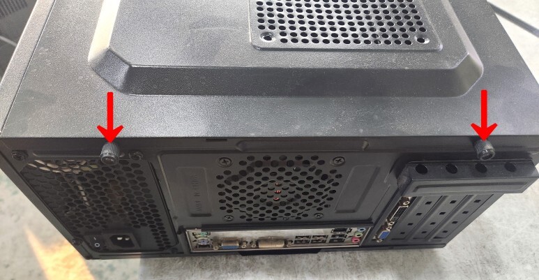 자 먼저 본체를 사진과 같이 눕히고 옆면에 나사 2개를 제거후, 케이스 옆판을 열어줍니다.