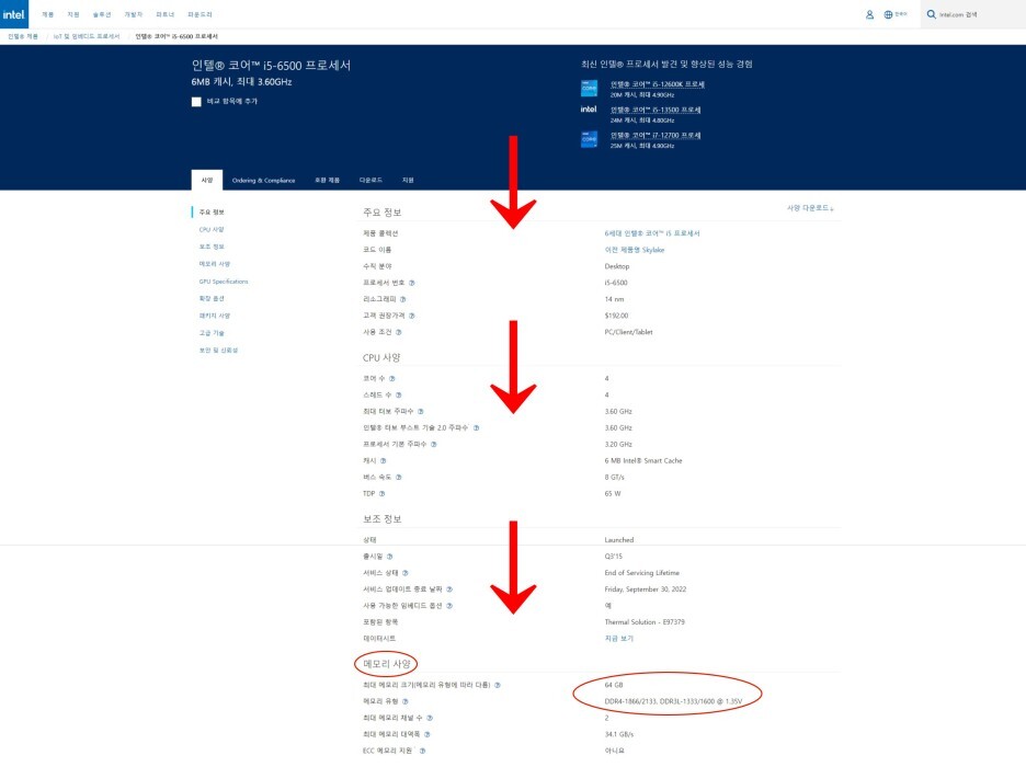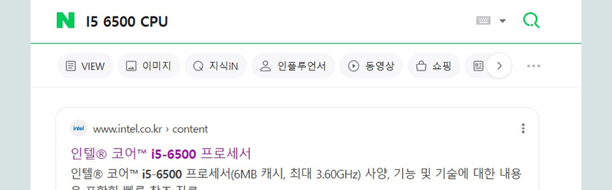 네이버 검색창에 CPU 이름과 CPU 라고 검색 (예: I5 6500 CPU)